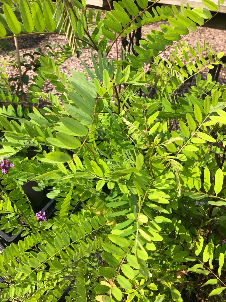 Amorpha fruticosa (false indigo) A vigorous deciduous shrub. Mature height and spread up to 4m. Purple flowers in summer. Position in full sun or partial shade.