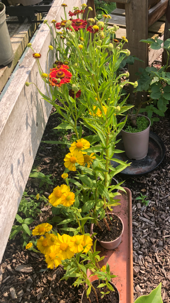 Helianthus ‘Lemon Queen’ (perennial sunflower) Masses of large, lemon yellow flowers from July to September. Strong growing up to 2m in Height. 45cm Spread. Dies back in winter. Fully hardy. Prefers a sunny position.